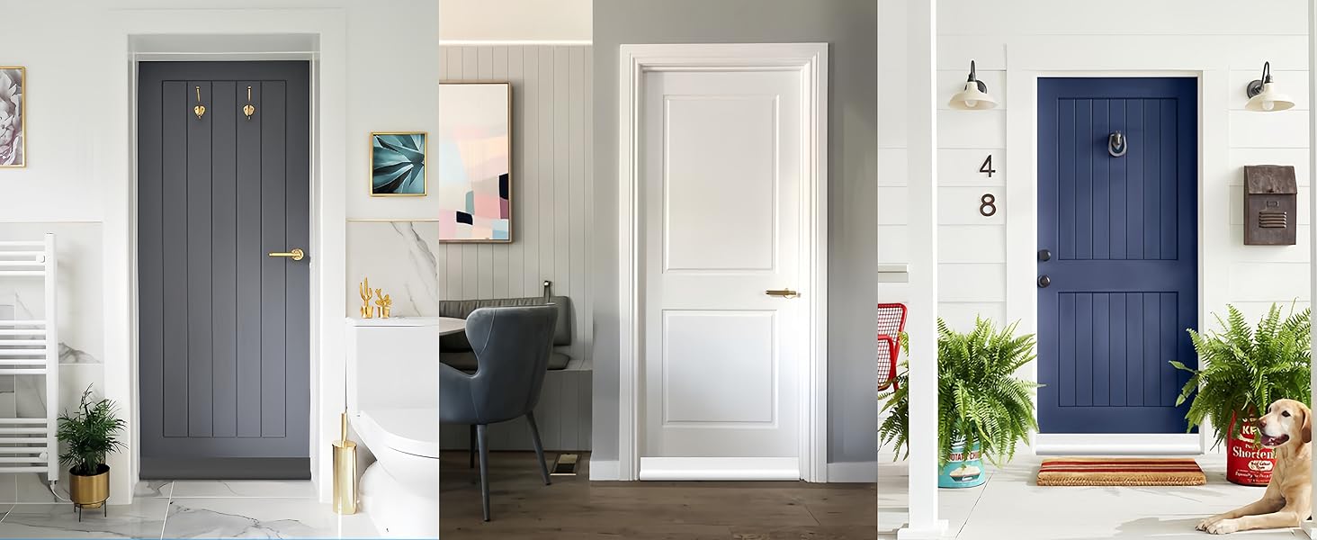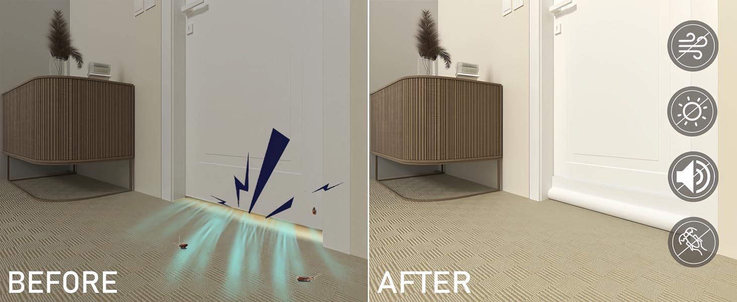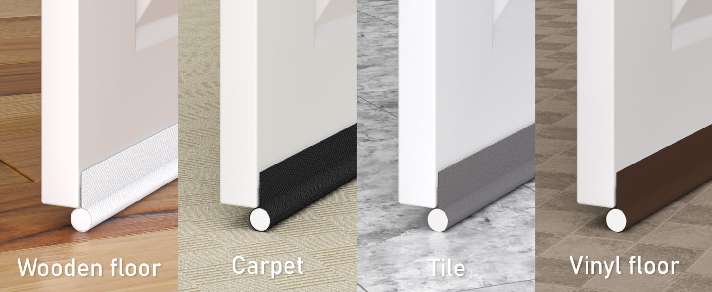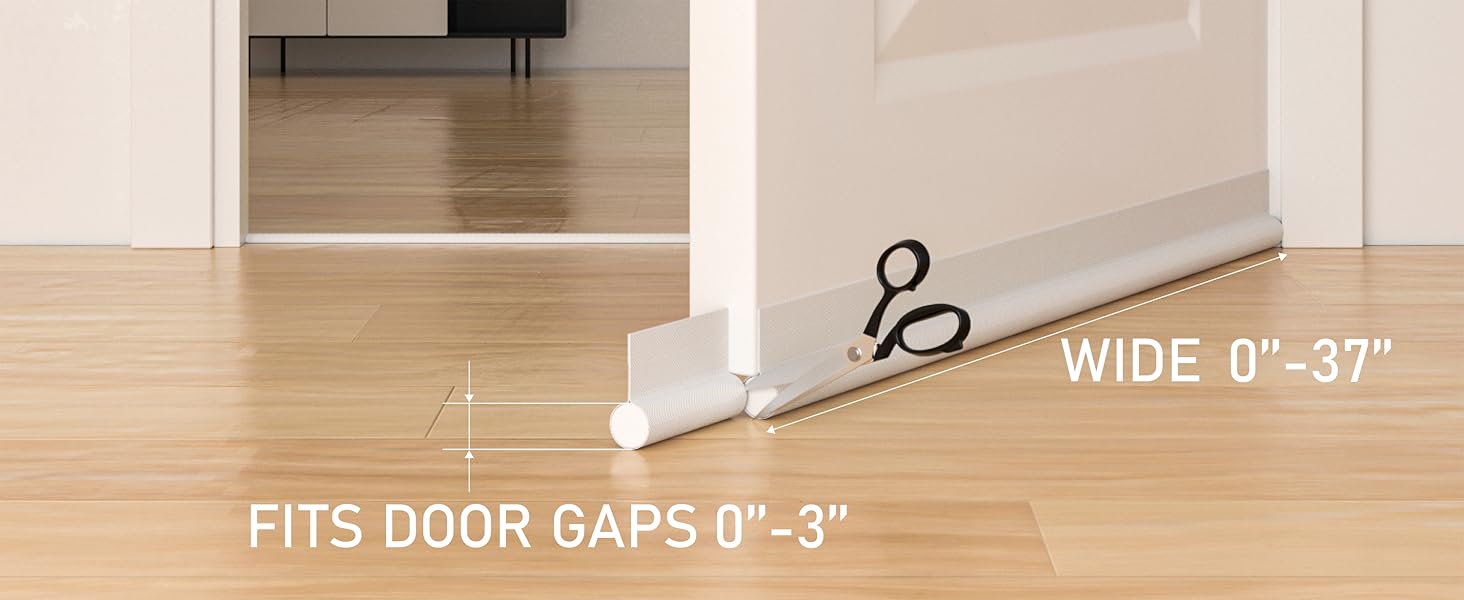 ✅【EASY AND FAST INSTALLATION】— Install our under door draft stopper,You just have to measure your doors gap, peel the adhesive layer off, stick the velcro in the door side you want,and stick on our door draft stopper. You can take it down whenever you want,and it won’t hurt your door. One-sided adjustable door draft has good adhesion and is easy to cut and adjust, and it will move with the door – including carpets, tile, linoleum and hardwoods and securely fits under doors up to 37 inches.