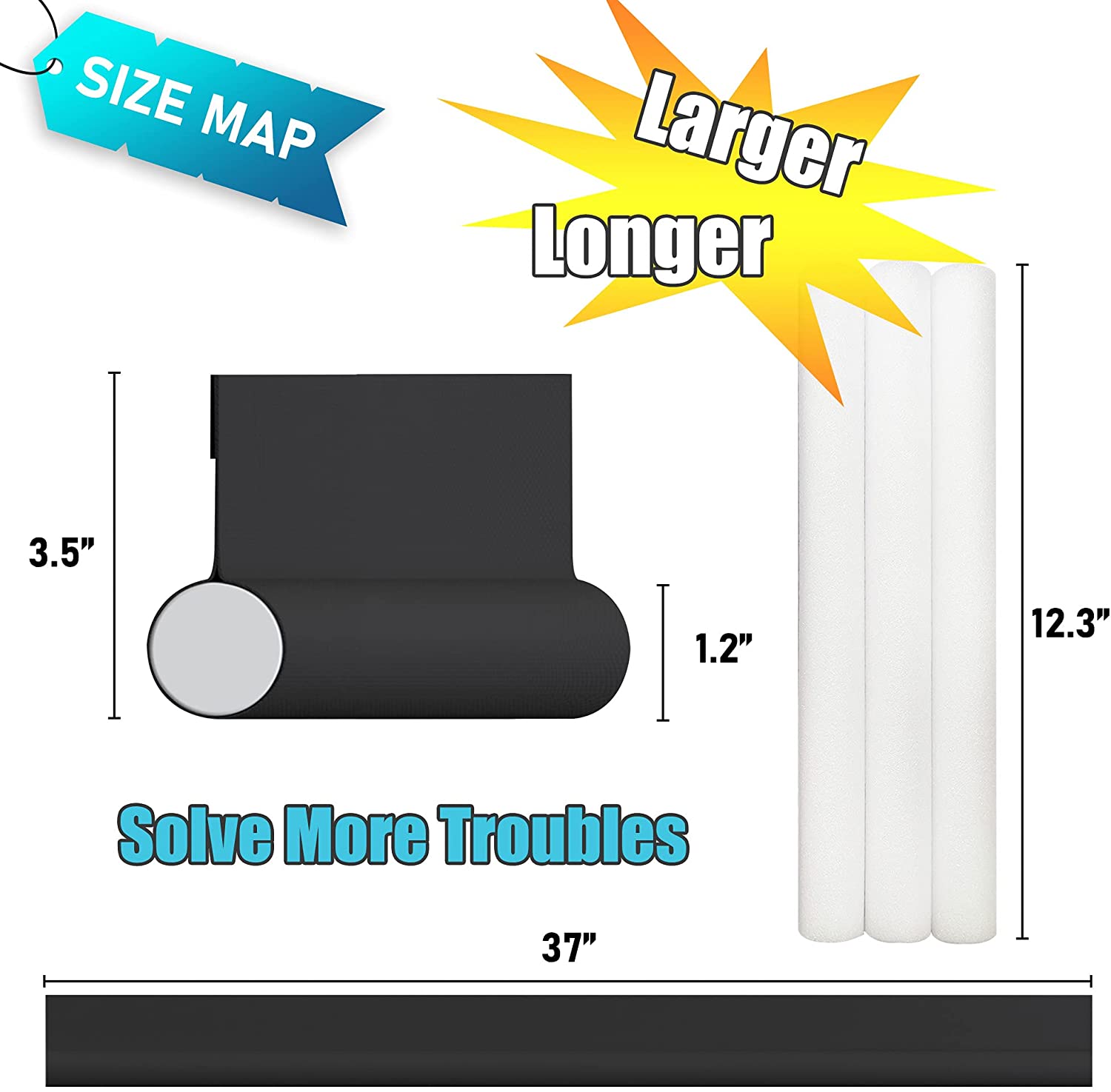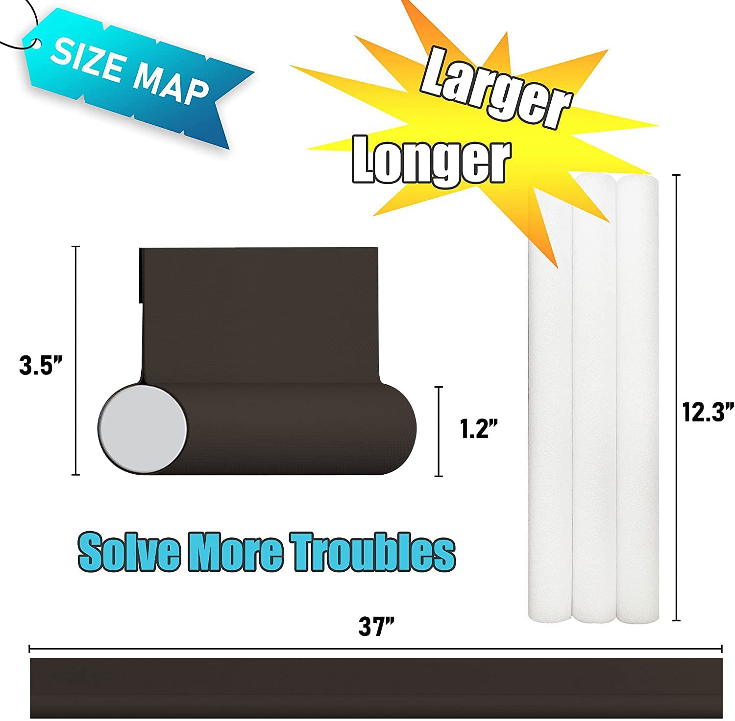 👼【ONE SIDED DOOR DRAFT BLOCKER】—SYIPO One Sided Adjustable Under Door Draft Blocker is made from top quality styrofoam and abrasion resistant Fabric. Fits door up to 37”. Total height is 3.5″. Jumbo 1.2-inch diameter foam tubes are perfect for blocking extra-large gaps under your door. The Under Door Draft Stopper will protect your home against the elements, taking the brunt of rain, snow, dust, and other weather-related factors.Keep your home safe with the SYIPO One Sided Door Draft Stopper.