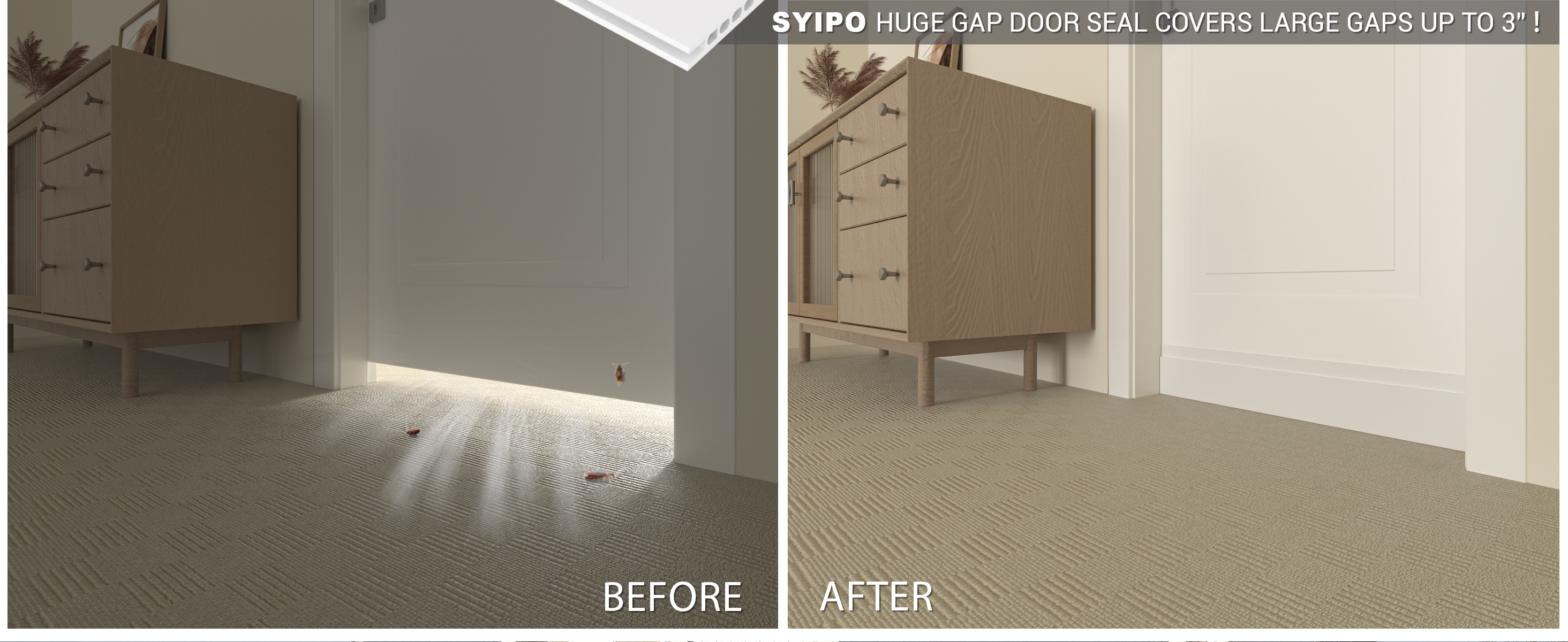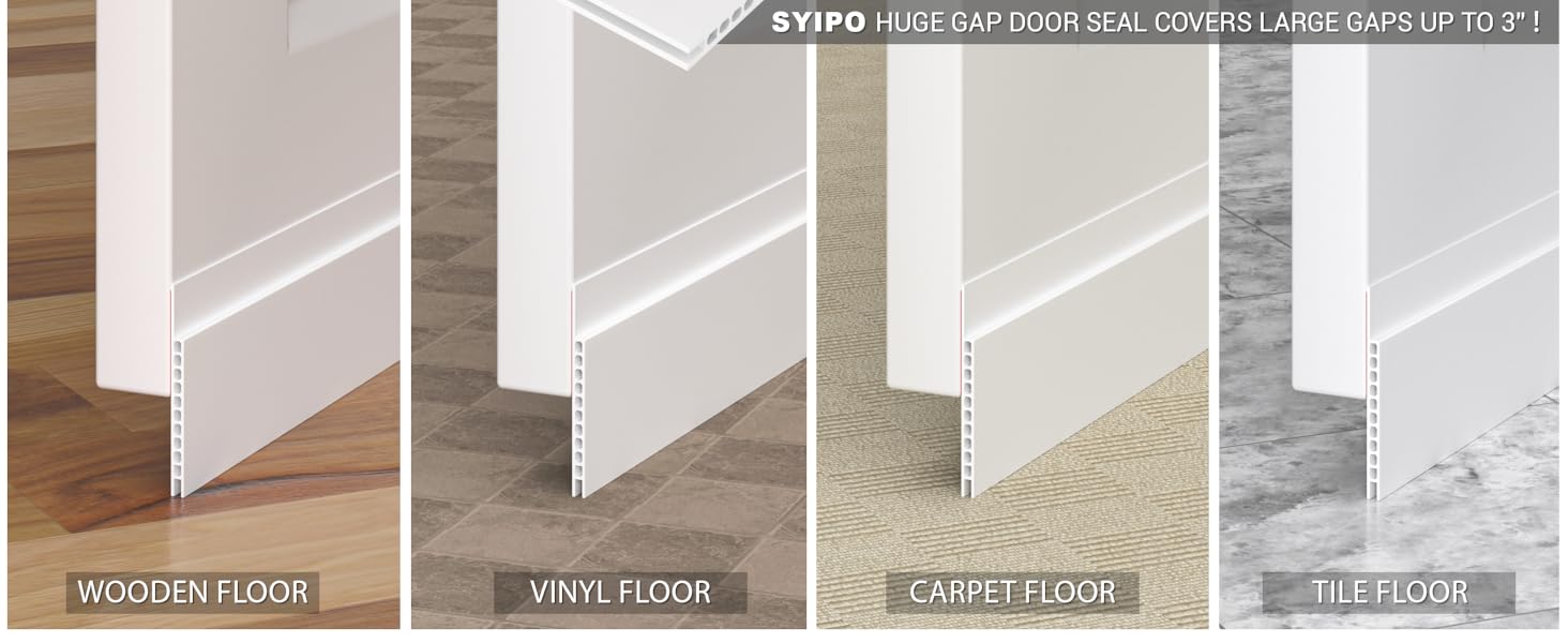 - ✅【Super Wide Backing Adhesive Design】- Upgrade under door draft blocker widened backing adhesive is widened up to 1.5 inches, close fit, almost is 2 times than the normal door bottom seal. The under door seal strip boasts unmatched water resistance and adhesion. It’s very useful for light, dirt, leaves, snow, smell and animals; You needn’t worry about it will fall off even in the worst storms!