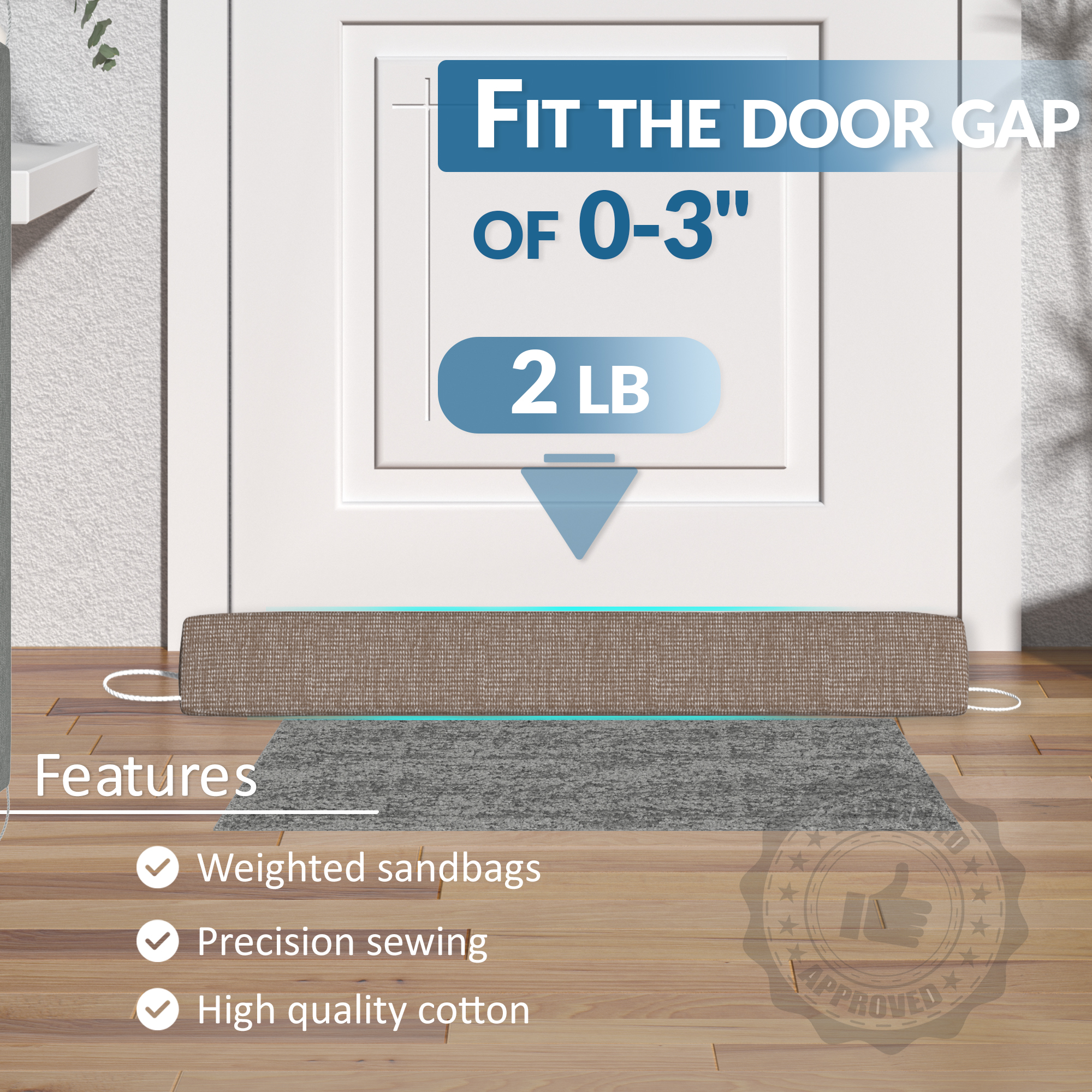 CONVENIENT TO USE & PLACE RANDOMLY: Our bottom draft blocker is easy to install. Just 2 simple steps: Stept 1: Open the package and take out the draft stopper; Stept 2: Smooth the door snake with your hands & place it under your door! DONE! Besides, the draft door stopper weather stripping with two hanging loops, you are able to hang it on anywhere, Stores neatly when not in use with its built-in hanging loop. Try our heavy draft stopper. You won’t be disappointed.