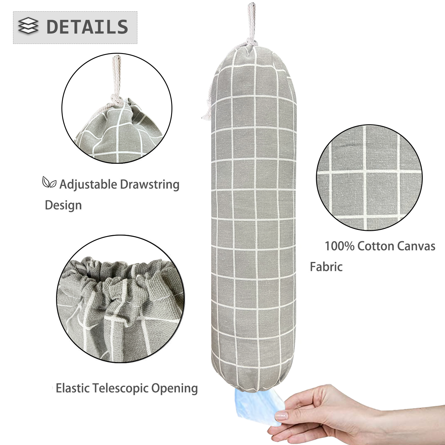 - ✅【Humanized Designs】- SYIPO plastic bag dispenser holder are designed with hanging and adjustable drawstring closure. It can be extracted from the bottom and free adjustment. It’s convenient to store large size shopping bags, tote bags, etc. Comes with an elastic open bottom can give easy access to the inside bag and preventing pulling several bags at once, and allow you to hang the plastic storage bags on a hook, wall, cabinet or cupboard door, maximizing the use of vertical space.